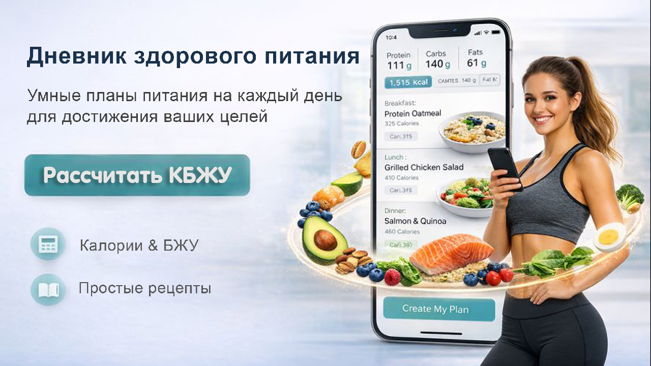 Питание стало проще, когда я перестала считать «на глаз». В Дневнике здорового питания: • рассчитывают нормы КБЖУ под твои параметры и цель • дают меню и рецепты (779+) — не скучно и без «диет» • удобно вести дневник питания и видеть прогресс • можно отмечать вес и смотреть график Если хочешь структуру без стресса — попробуй: {ВАША_ССЫЛКА}